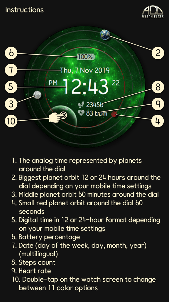 - The biggest planet orbits 12 or 24 hours around the dial depending on your mobile time settings