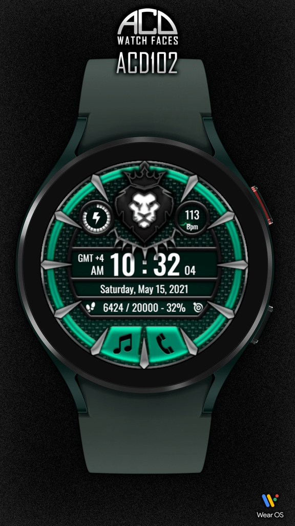 Digital Wear OS watch face design with feral animal heads like a lion, panther, tiger, wolf, and a multicolor ring with talons around the bezel.